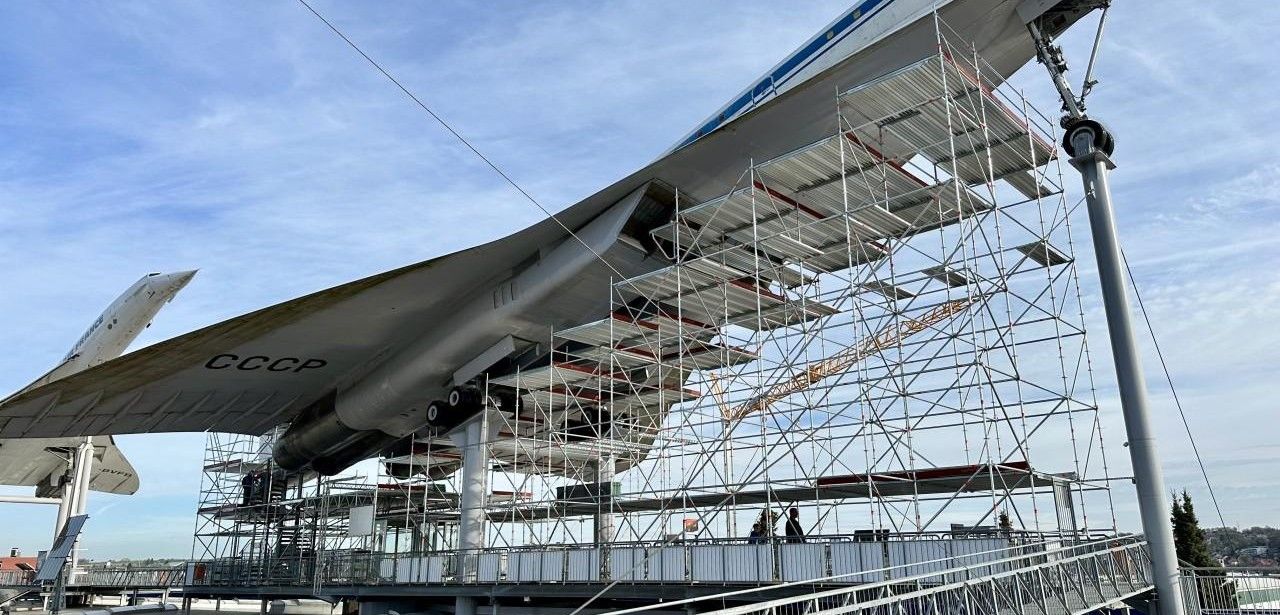Im Rahmen des 45-jährigen Jubiläums des Technik Museum Sinsheim beginnt eine umfassende Aufarbeitung der auf dem Dach installierten Tupolev Tu-144. Nach 25 Jahren unter freiem Himmel sind Korrosionsgefährdung und Lackschäden offensichtlich. Die Restaurierung basiert auf einer innovativen Statiklösung, die das Layher-Gerüst der Wilhelm Layher GmbH & Co. KG ohne aufwendigen Kranaufwand direkt auf dem Hallendach verankert. Die Wolfgang Fuchs GmbH übernimmt die sichere Montage. Finanziert vom gemeinnützigen Museumsverein und Sponsoren.